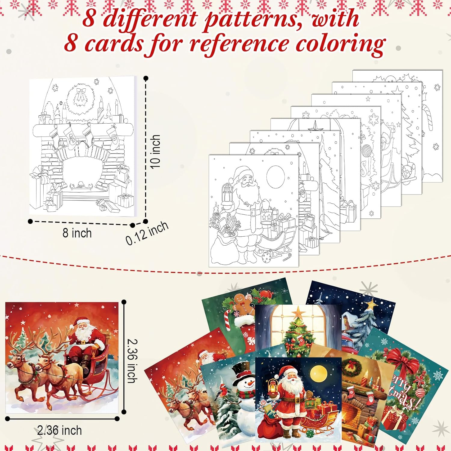 - Extensive Pre Printed Canvases Set: a total of 8 pre printed canvas, with 8 different well designed patterns; Comes with 12 color reference matching cards corresponding to the pattern; 2 packs of acrylic paint set, each pack contain 12 different colors; 2 pcs wooden easel holders; 8 packs of paintbrushes, 3 per pack, including 3 different pen and 8 pcs of white paint trays