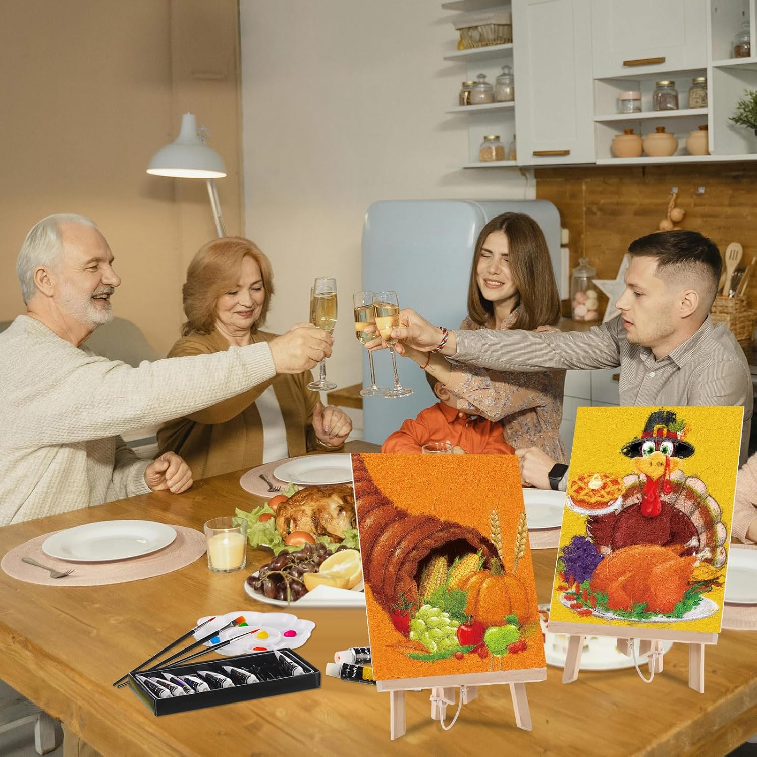 Cholemy 36 Pcs Paint and Sip Kit for Adults 8''x10'' Pre Drawn Canvas for Painting DIY Afro Acrylic Painting Kit Wood Easel Brushes Date Night Bulk for Christmas Party Gifts(Fall Scarecrow)