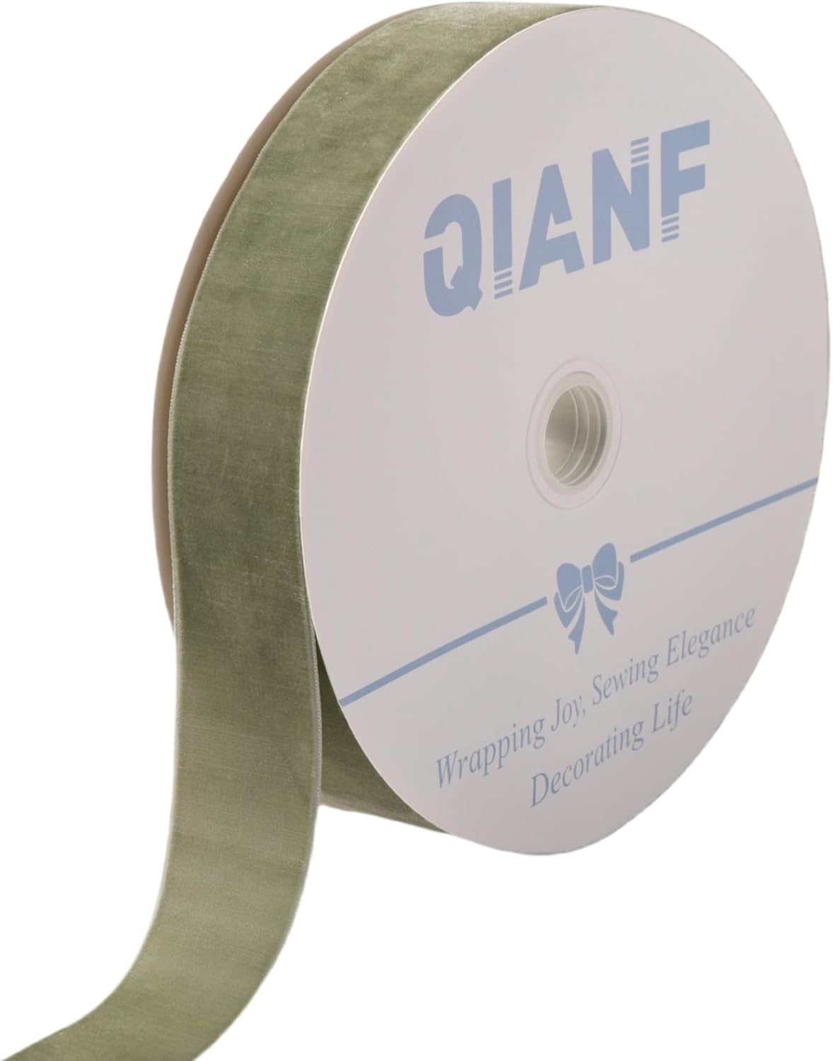 Vintage Sage Green Velvet Ribbon Christmas Ribbon for Gift Wrapping Crafts Christmas Tree Ornaments Garland Decorations, 1-1/2 Inch X 25Yd