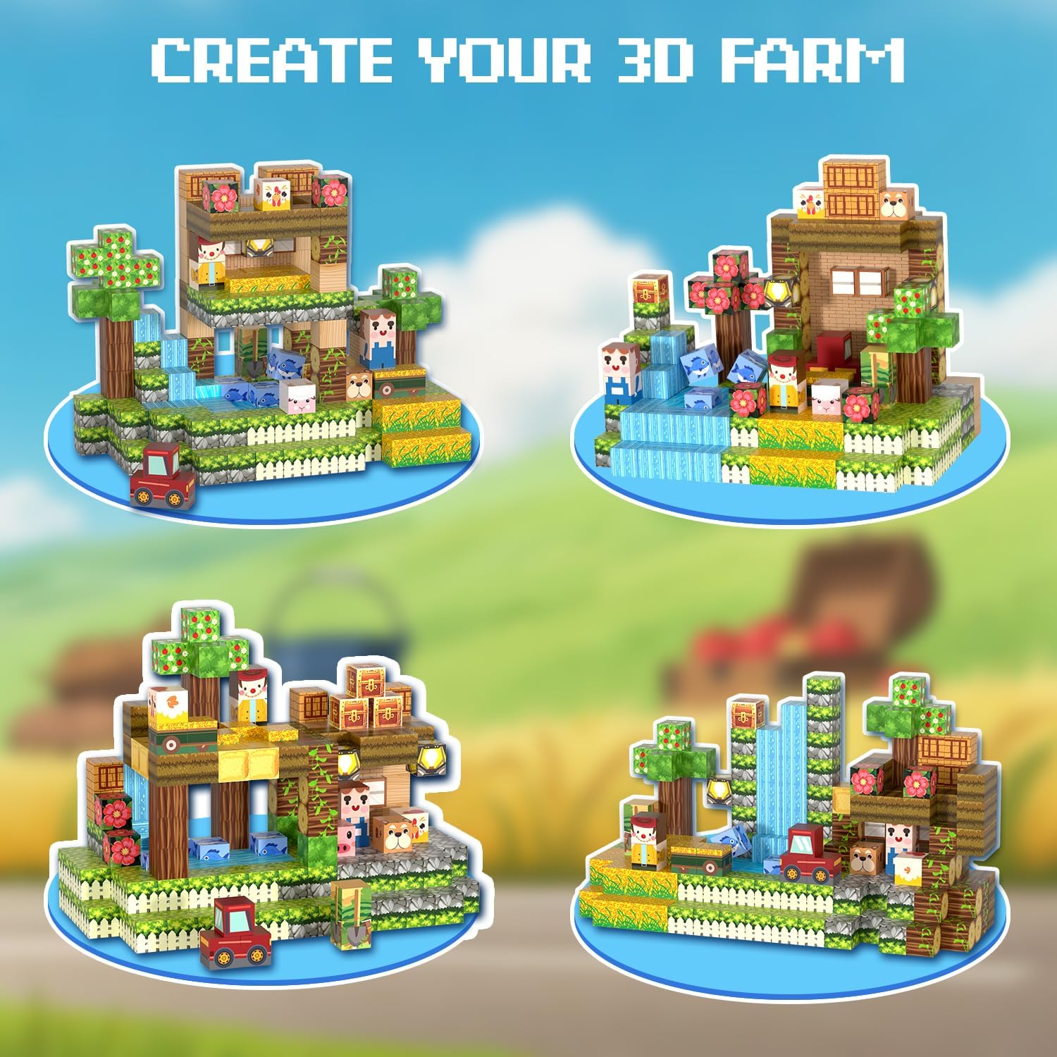 - Farm-Themed Set: Let's start on an adventure with these magnetic building blocks! Spark the imagination of kids with themes of farm, river, animals, plants, each block features a wide range of captivating and imaginative patterns. Boys and girls can follow the instructions to build vibrant farm, or use their imagination to create their own magic farm world for hours of enjoyment