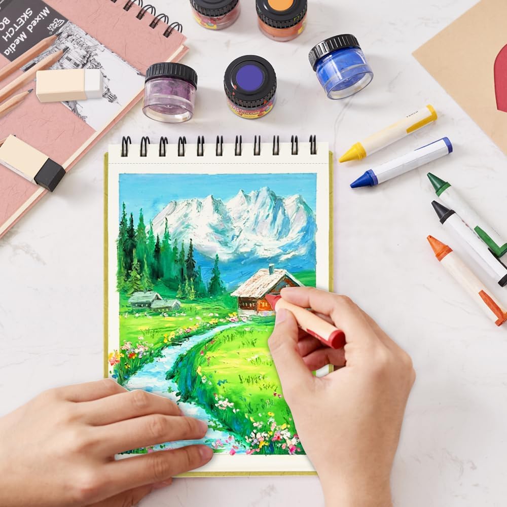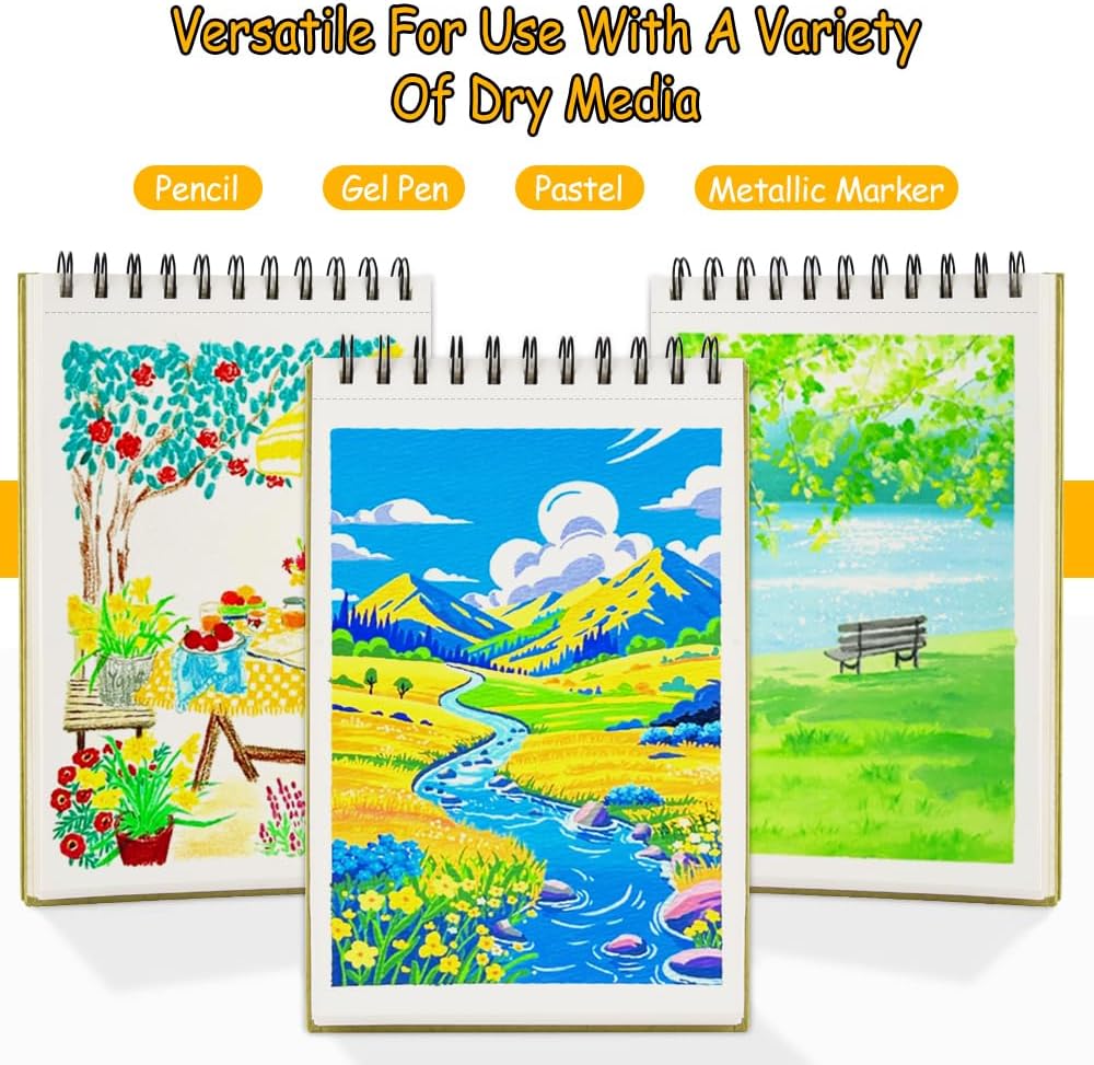 - Premium Paper Quality: 8.3x5.8in mixed media sketchbook, 92lbs/150gsm acid-free papers, 60sheets in each blank notebook. Fine texture for drawing, sketching, it is suitable for various dry media such as pencils, charcoal pencils, gel pens, colored pencils, pastels, etc. It is an ideal choice for artists or beginners