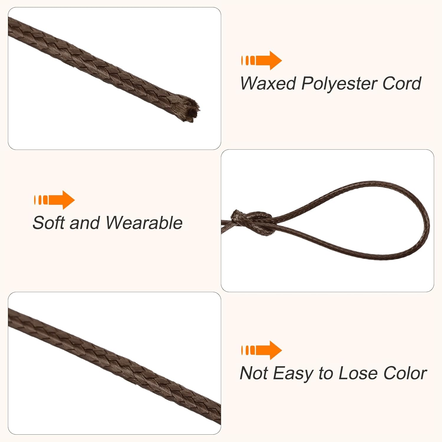 - Color: Dark Coffee; Waxed Polyester Cord; Material: Polyester; Wire Diameter: 2mm / 0.08 inch; Length: 10m / 11 yard.