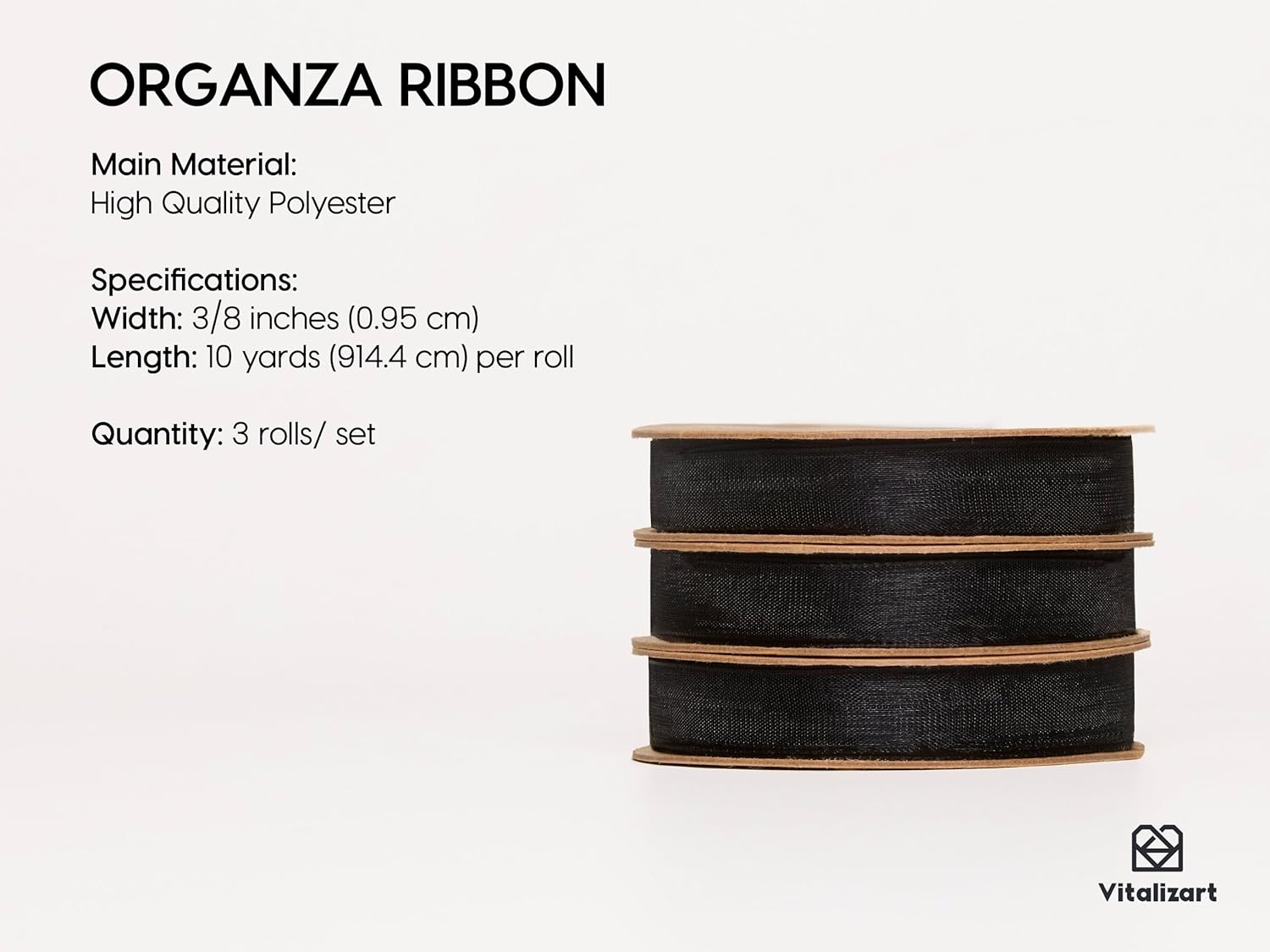 Vitalizart 3/8" x 30Yd Organza Ribbon Black Sheer Ribbons Set 10 Yd x 3 Rolls Handmade Eco-Friendly for Gift Wrapping Christmas Tree Crafts Bows Wedding Invitations Wreaths Wrap