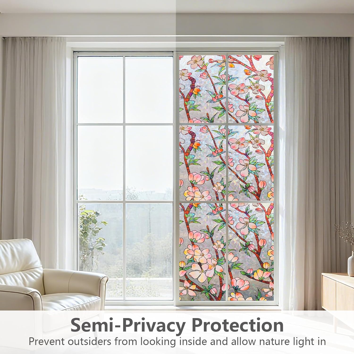 NINETREX Window Privacy Film,3D Stained Glass Window Film,Rainbow Static Cling Stickers Blocks Heat & UV,Non-Adhesive Vinyl for Home Door (Peach Blossom,17.5 x 157.4inch)