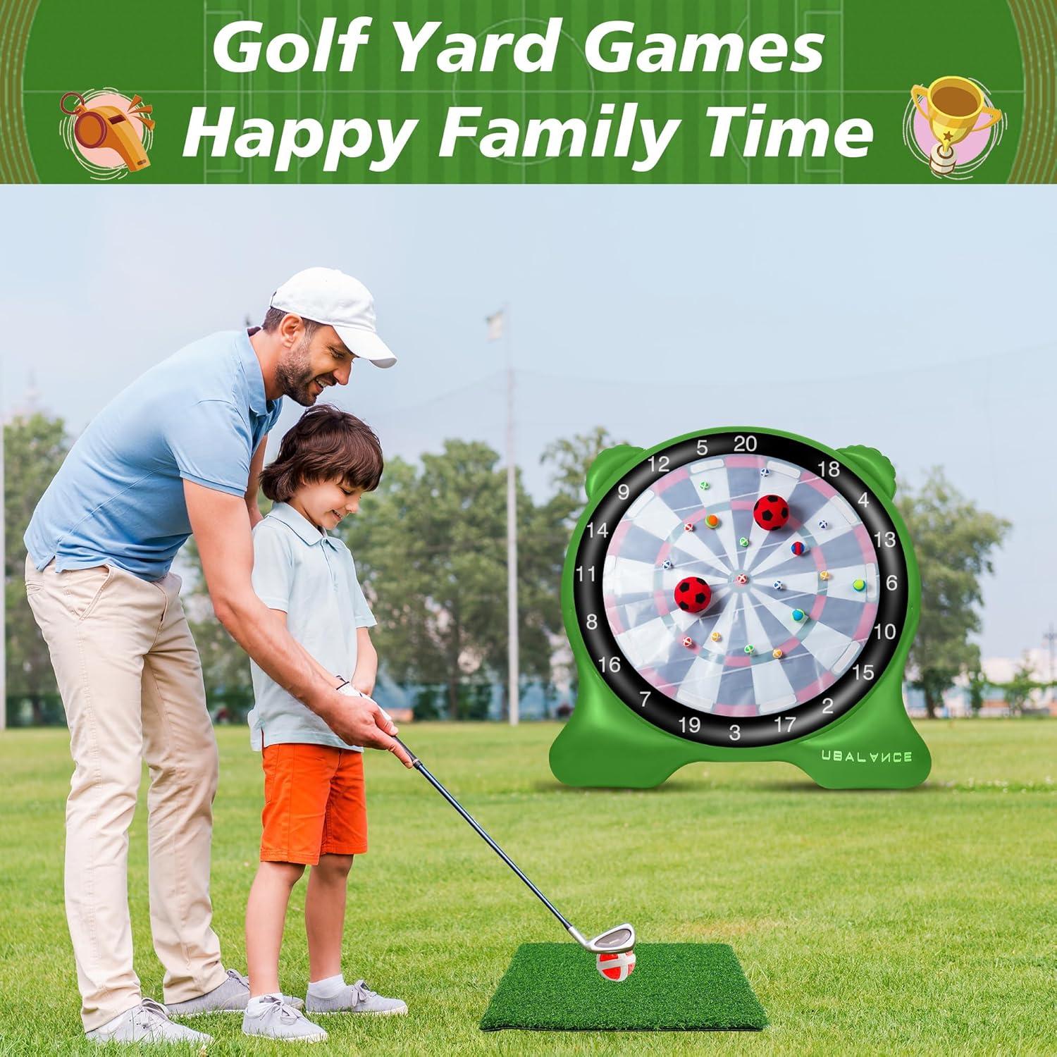 UBALANCE Giant Inflatable Dart Board, Outdoor Dartboard Yard Games for Adults, Family Sports, Sticky Kick Balls, Soccer, Tennis, Soft Darts, Golf, Party Fun Carnival Games