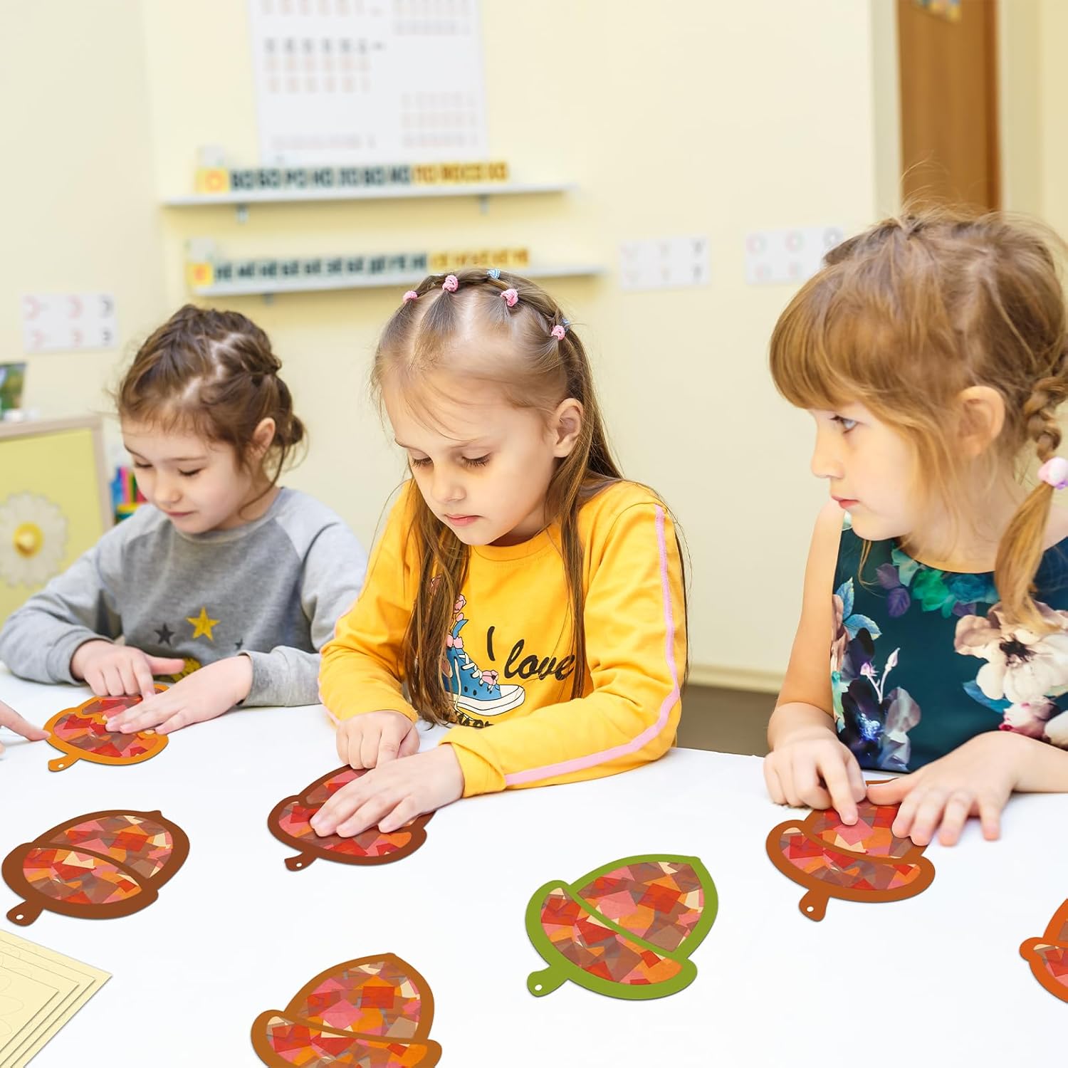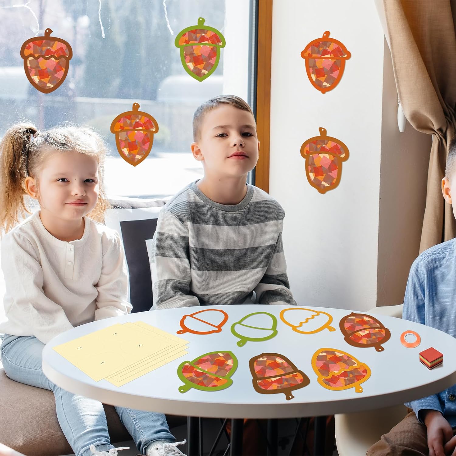Renbuzhu 40PCS Fall Crafts Bulk: Acorn Paper Suncatchers DIY Kit for Autumn Thanksgiving Activities Decorations, Window Stained Glass Effect Art Supplies