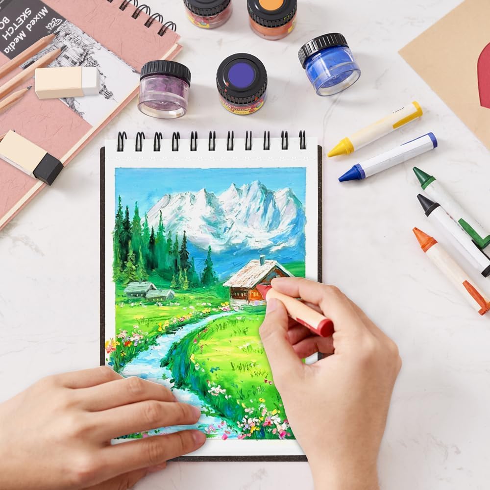 - Premium Paper Quality: 8.3x5.8in mixed media sketchbook, 92lbs/150gsm acid-free papers, 60sheets in each blank notebook. Fine texture for drawing, sketching, it is suitable for various dry media such as pencils, charcoal pencils, gel pens, colored pencils, pastels, etc. It is an ideal choice for artists or beginners