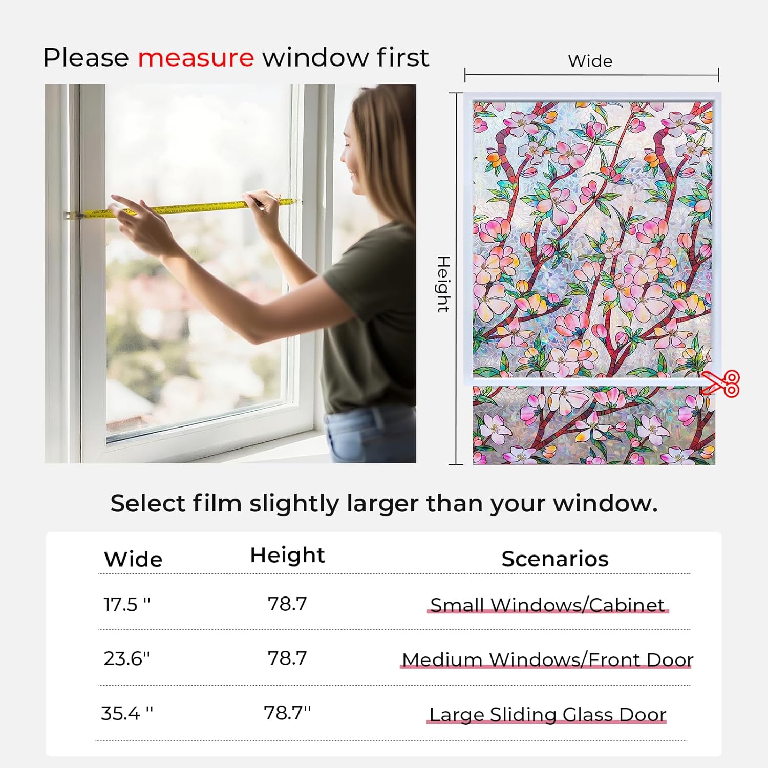 - Suitable for Various Window Shapes - Available in multiple sizes, this film can be easily cut to fit a wide range of window styles, making it perfect for use on front doors, bathrooms and bedrooms etc. For any questions please contact our dedicated OHTMERU support team.