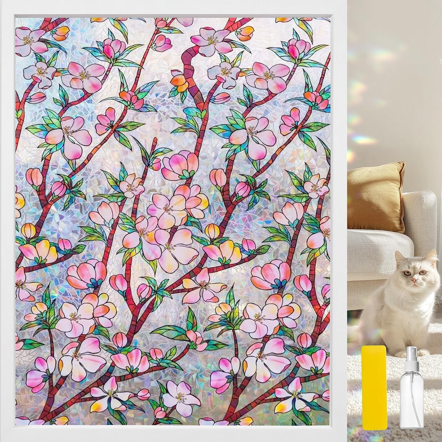 - Rainbow Stained Glass Film: Witness sunlight transform into a dazzling rainbow effect, casting vibrant, serene hues across your space like a living stained glass masterpiece. Experience the enchanting beauty with every ray of light!