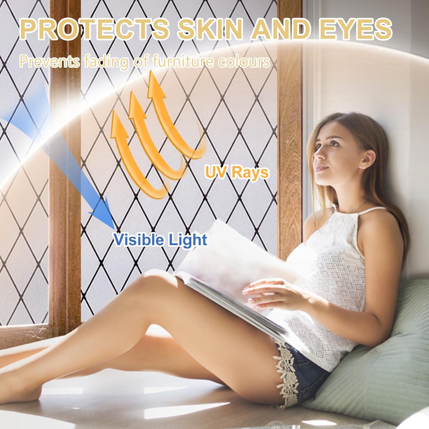 - Privacy and Comfort - Enjoy natural light without the unwanted attention from outside. This privacy film gives you both comfort and peace of mind by letting in soft daylight while blocking outside views — no need to close the blinds or pull down the curtains. Anti-Glare – reduces harsh sunlight, making it easier to read or work on your computer without glare or eye strain.