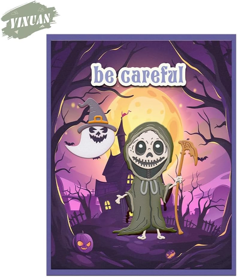 Halloween Clear Silicone stampReusable Stamp with Pumpkins, Skulls, Bats, Santa Claus, and Holiday Designs. Used for Making Cards, scrapbooks, and DIY templates (Halloween Grim Reaper)