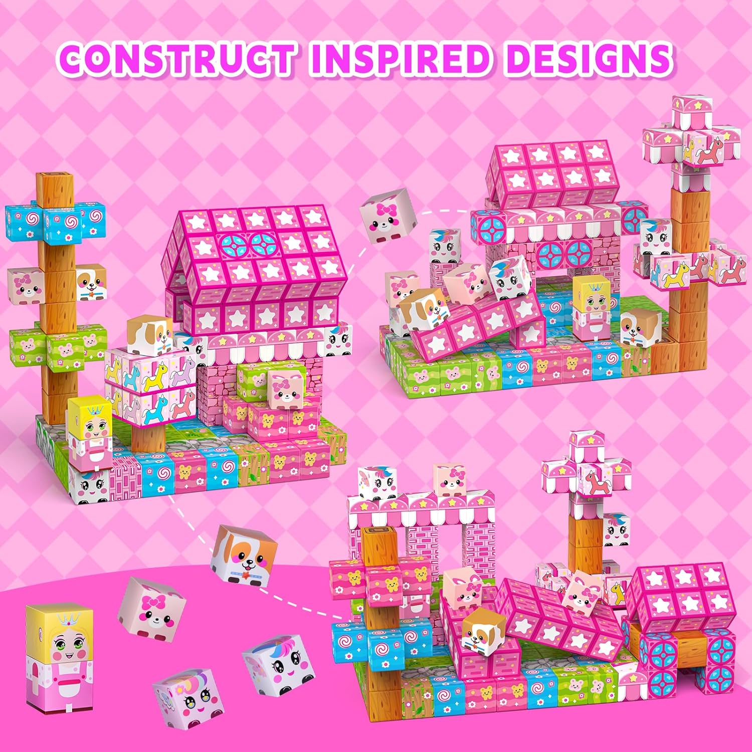 - 【Strong Magnets & Play-Ready Safety】:powerful magnets per cube keep castle playland creations secure, from swing sets by the tower to popcorn stands near the gate.smooth edges, and sealed magnets, they’re safe for little hosts running their own royal amusement days.