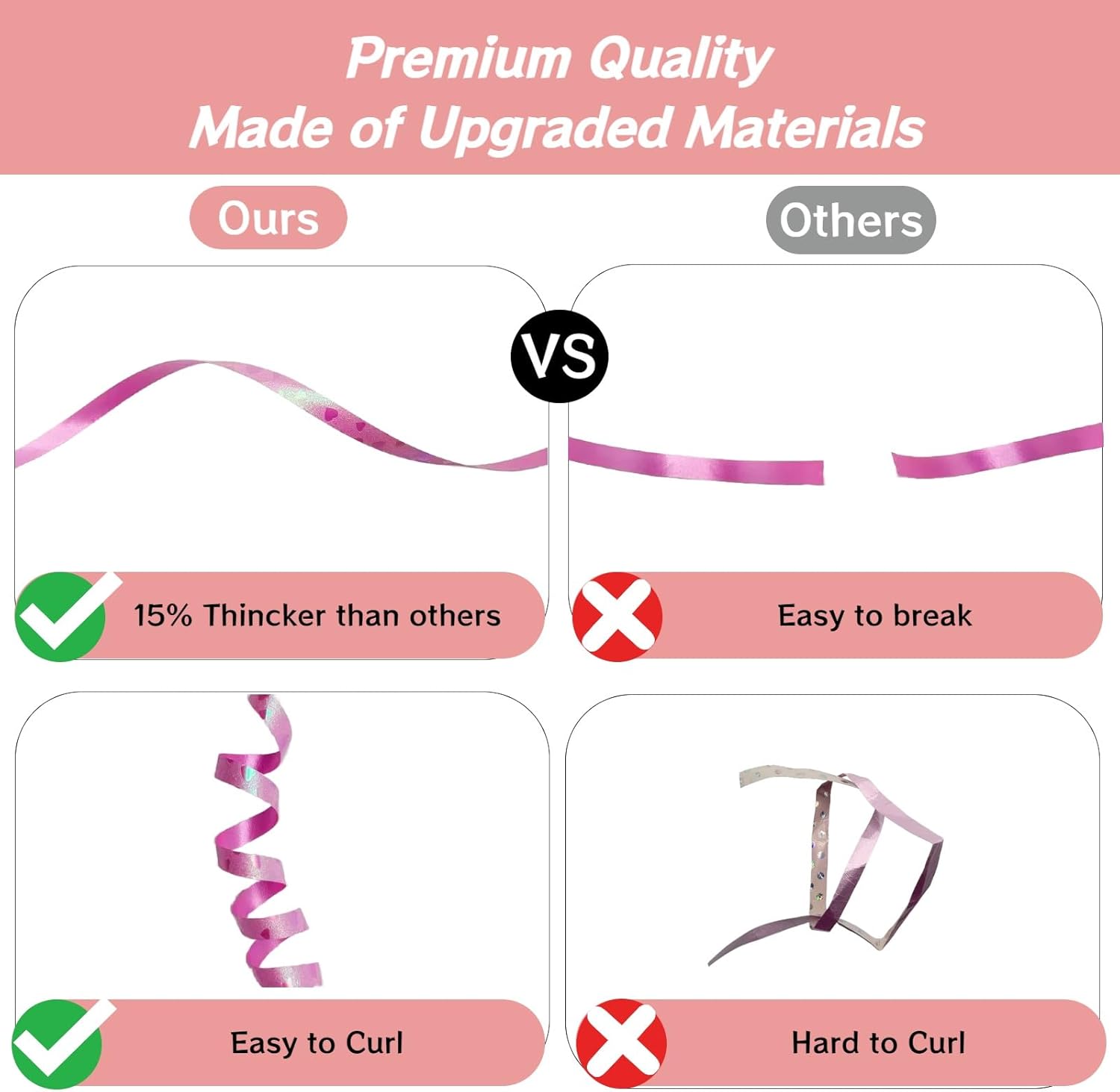 - Sturdy and Thick: The Curling Ribbon for Gift Wrapping is made of upgraded material which provides strong durability and sturdiness. Reusable for multiple party decorating occasions.