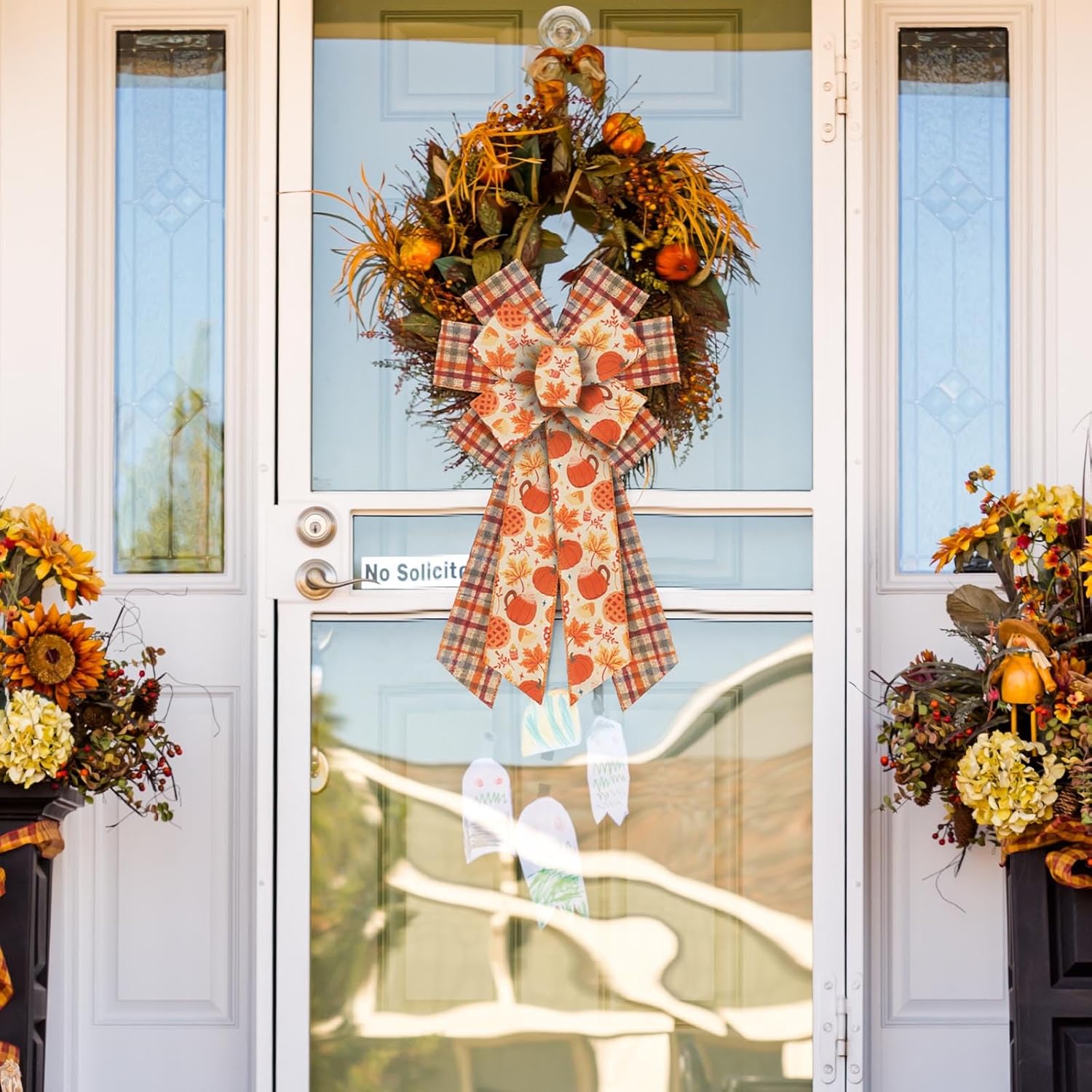 - Occasion: Our pumpkin maple leaf wired wrapping ribbons bows are very suitable for autumn party/ Thanksgiving party/ Halloween decor/ carnival/ birthday/ family gathering decorations. You can use these orange buffalo plaid ribbons for gift wrapping, bow, wreath, door, flower basket, float, wall, fireplace, fall ornaments etc. You can also give it as a gift to your friends and family who want to decorate in the festival.