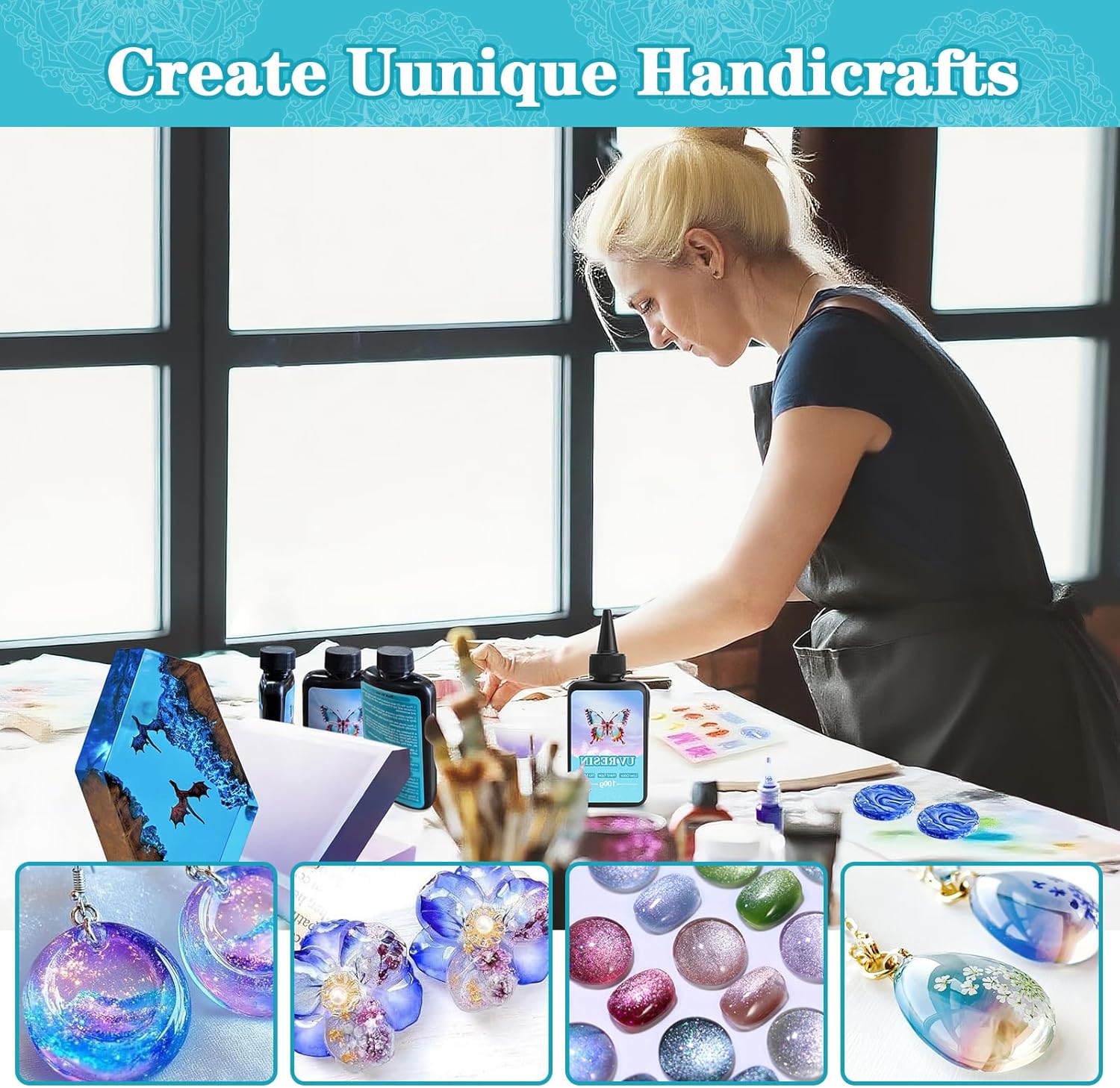 - 【Multi-Purpose】UV epoxy resin can be used to make jewelry, craft decorations, castings, ornaments and so on. It can also be mixed with mica powder, colorants, glitter and sequins to create more brilliant colors. Unleash your creativity and design unique pieces that reflect your style.
