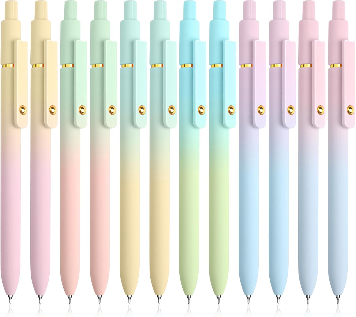 12 Pcs Gel Pens 0.5mm Quick Dry Black Ink Pens Fine Point Smooth Writing Pens, Cute Office and School Supplies Gifts for Women Teacher Students (12 Pcs Ombre Gold)