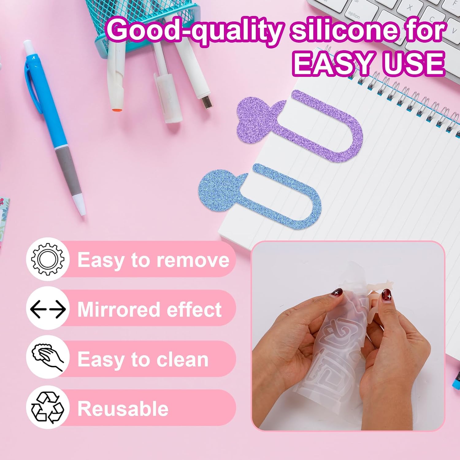 3pcs Paperclip Bookmarks Mold, Jumbo Paper Clips Bookmarks Silicone Mold with Multiple Style Epoxy Heart Resin Casting Mould Butterfly Making Supplies for DIY Crafts Book Lovers Gift